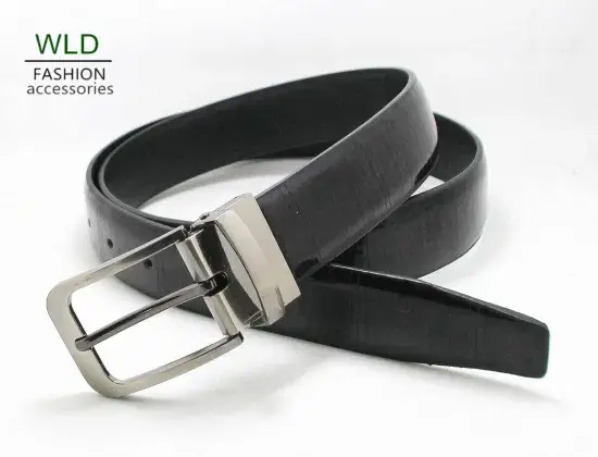 Dây lưng nam da đen kiểu cổ điển, thích hợp cho trang phục lịch sự.