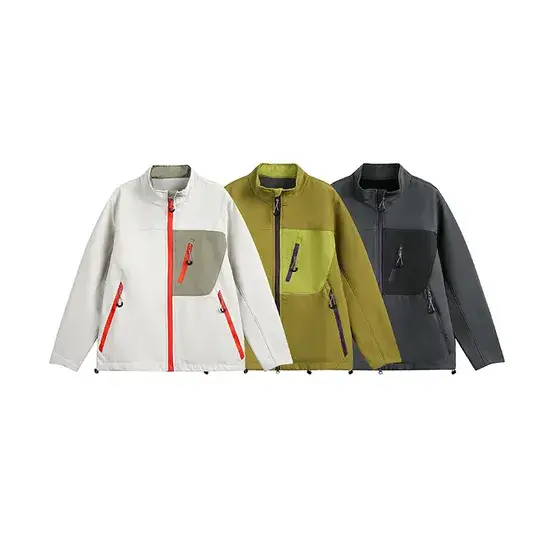 Áo khoác nam chống gió ngoài trời màu sắc phối hợp, thiết kế khóa kéo và cổ đứng, chất liệu softshell