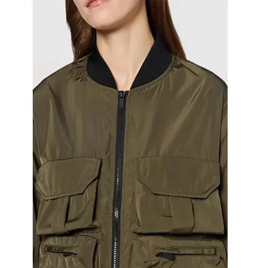 Áo khoác bomber dài tay ôm vừa vặn, thời trang với khóa kéo và túi cho phái đẹp