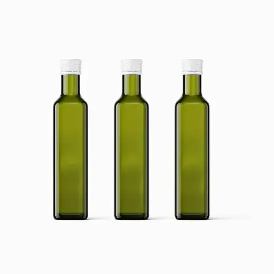 Chai dầu ô liu thủy tinh màu nâu xanh đậm dạng vuông với các dung tích 250ml, 500ml, 750ml và 1000ml