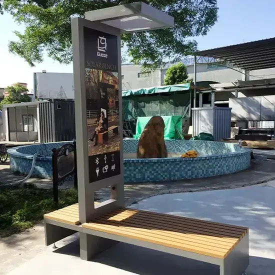 Bàn làm việc năng lượng mặt trời tích hợp màn hình và loa, lý tưởng cho quảng cáo tại cửa hàng, trường học và không gian công cộng