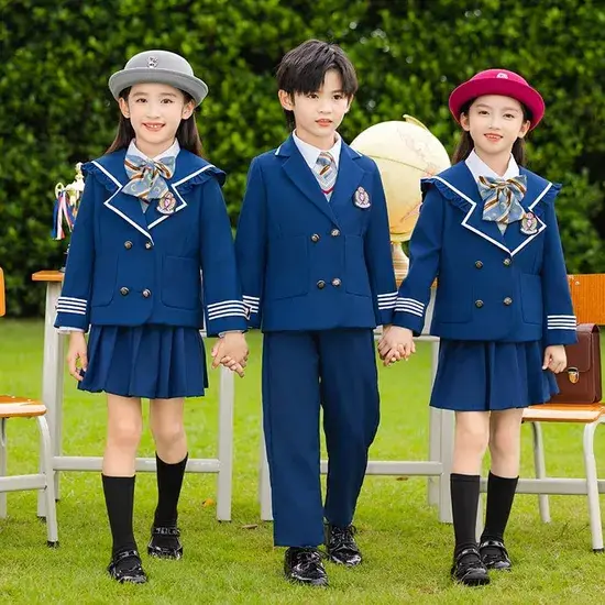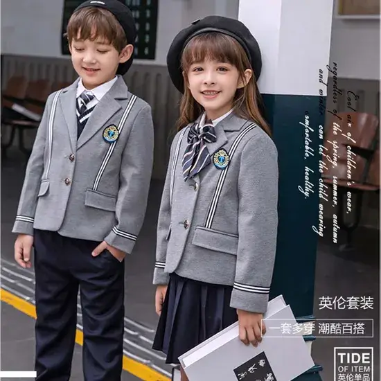 Đồng phục học sinh cotton cho nam và nữ của trường tiểu học phù hợp cho mùa thu, đông, hè