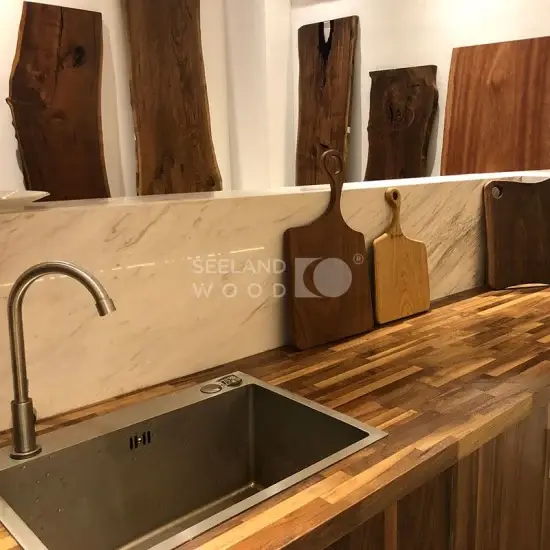 Bảng cắt gỗ tự nhiên cạnh sống phù hợp cho không gian bếp hiện đại