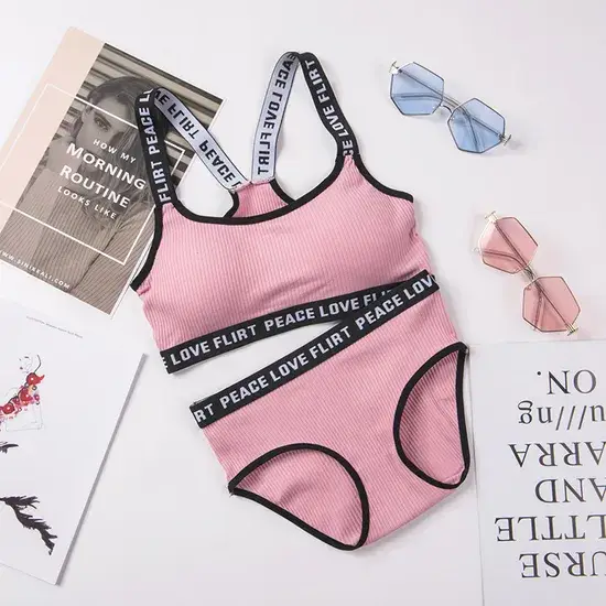 Bộ đồ lót nữ cotton ribbed không gọng với đệm ngực thoáng khí, kiểu bandeau thể thao