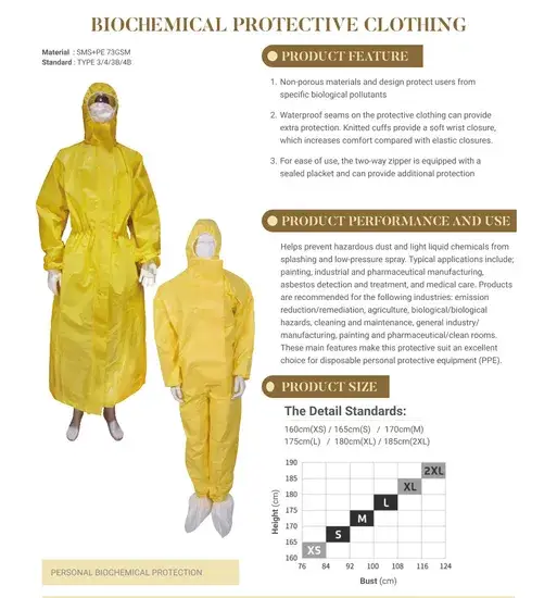 Bộ trang phục bảo vệ chống hóa chất dùng một lần, thoáng khí và chống nước, thiết kế dành cho ngành công nghiệp và y tế