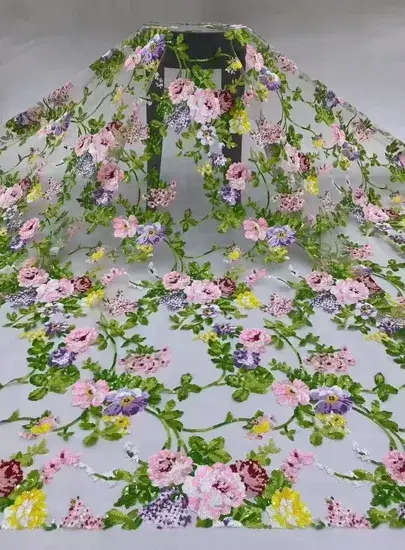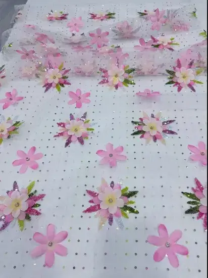 Vải thêu hoa và sequins thiết kế mới năm 2025