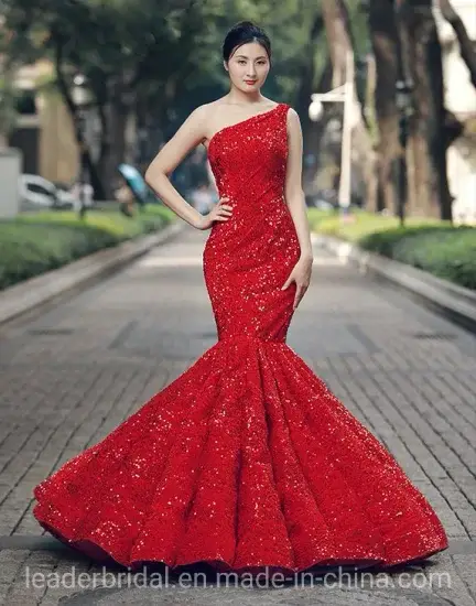 Đầm Dạ Hội Nữ Tiên Cá Màu Đỏ Áo Một Vai Lấp Lánh