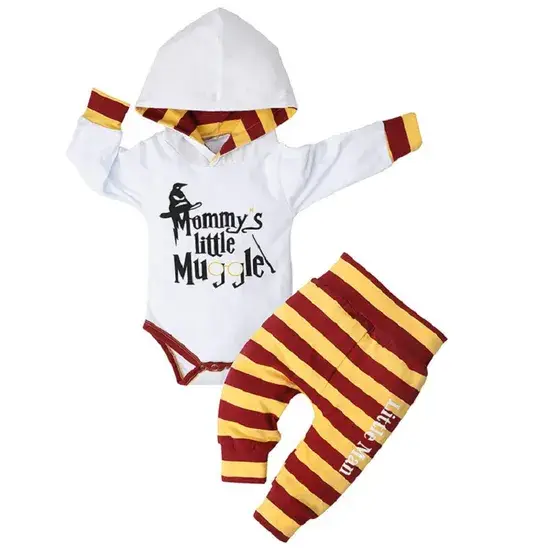 Bộ đồ thời trang cho bé gồm bodysuit có mũ in chữ và quần sọc Esg16501
