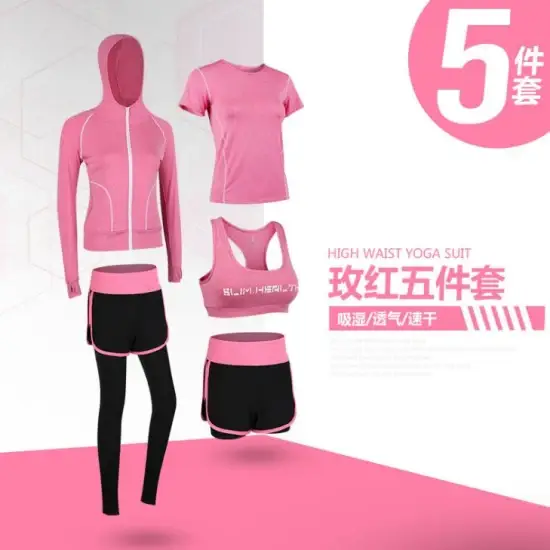 Bộ trang phục yoga đa năng 5 món dành cho phụ nữ với quần short, áo crop top, áo vest và áo thun co giãn tiện lợi