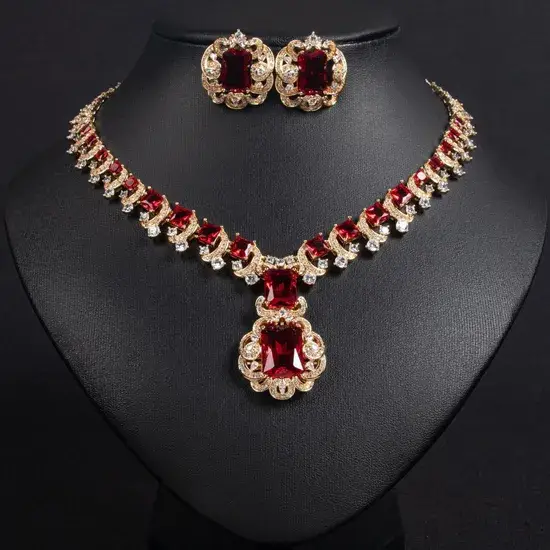 Bộ trang sức thời trang cho phái đẹp, bao gồm dây chuyền pha lê và chất liệu thép không gỉ