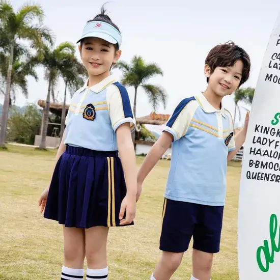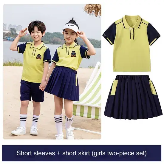 Đồng phục mùa hè sọc cotton cao cấp với huy hiệu màu vàng tùy chỉnh cho trường học