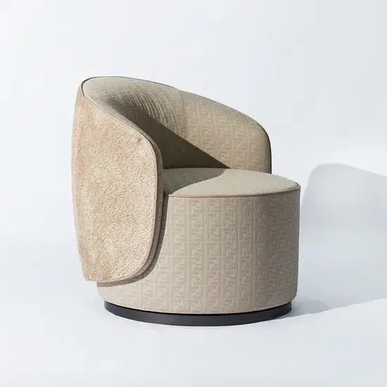 Ghế tròn bọc nhung thanh lịch với tay vịn thoải mái, lý tưởng cho không gian nghỉ ngơi