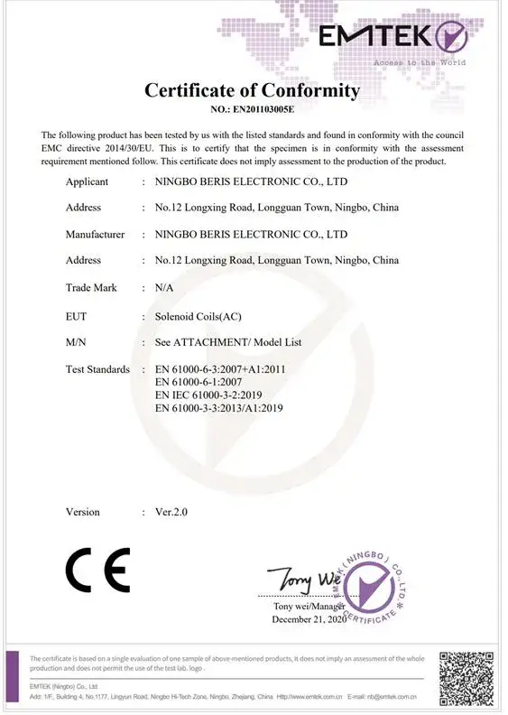 | Phạm vi ứng dụng | van điện từ |